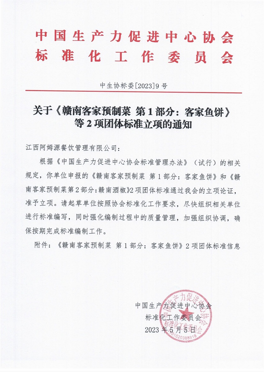 关于《赣南客家预制菜 第1部分:客家鱼饼》等2项团体标准立项的通知