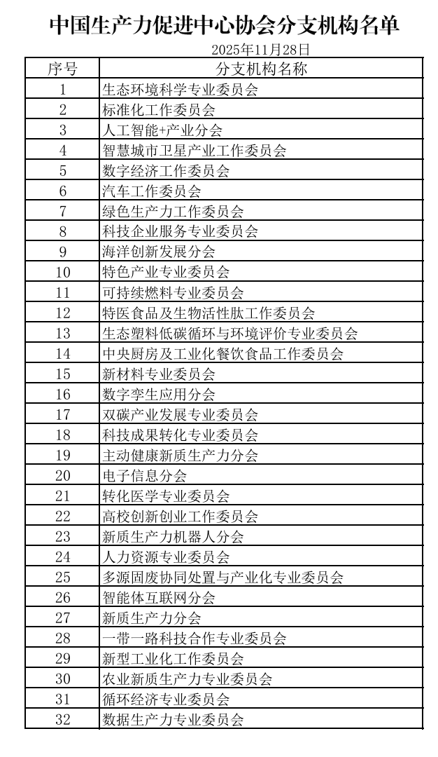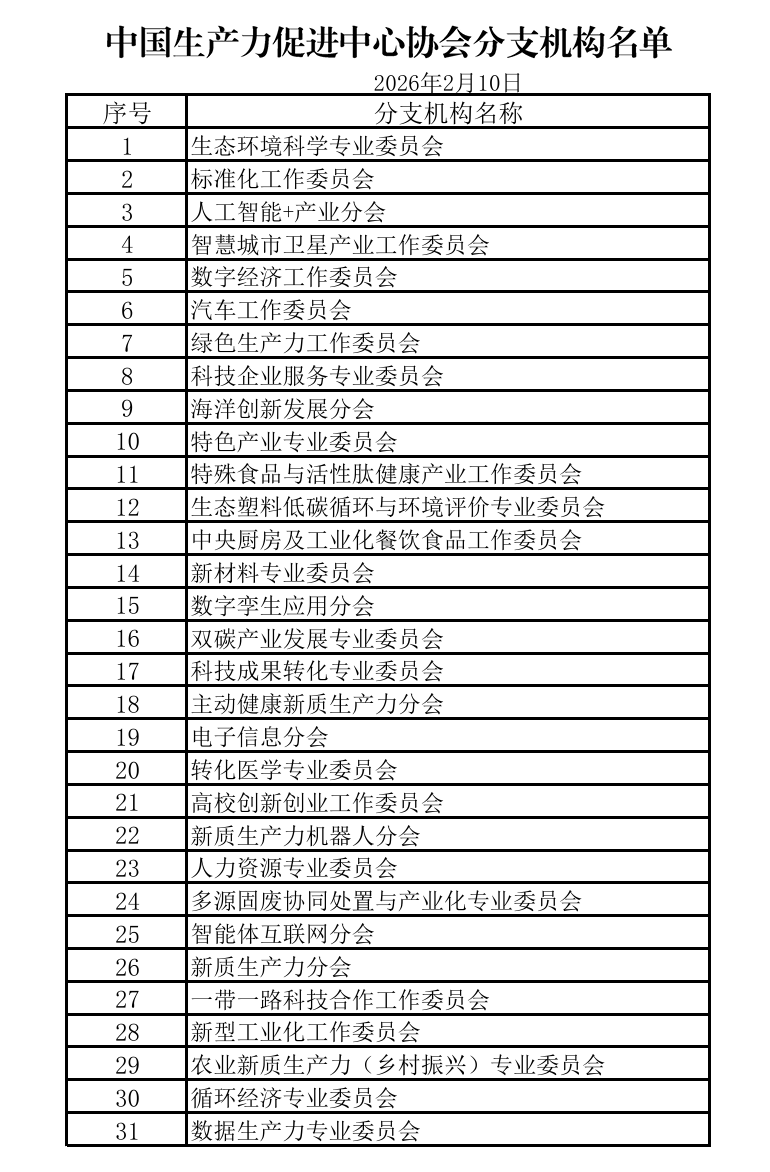 生产力中心名录